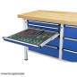 Alle Schubladen sind aus hochwertigem Stahlblech mit Pulverbeschichtung, besitzen einen 100% Vollauszug mit Einzelauszugsperre und eine max. Traglast von 100 kg pro Schublade. Türen sind ausgestattet mit Versteifungsprofilen, stabilen Scharnieren mit Zuhaltung und können in einem Winkel von 180° geöffnet werden. An allen Schubladen- und Türfronten sind Griffprofile mit Beschriftungsmöglichkeit angebracht.