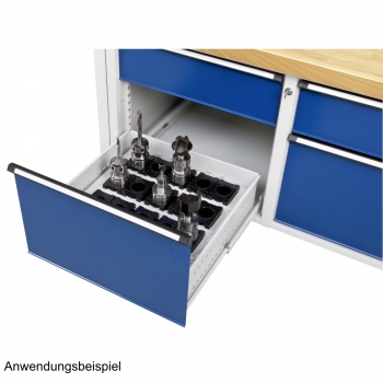 • Lochboden und Schlitzwände zur individuellen Schubladeneinteilung.