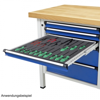 • Lochboden und Schlitzwände zur individuellen Schubladeneinteilung.