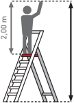 Maximale Arbeitshöhe gemäß BGI 694. Arbeitshöhe = Höhe letzter Standsprosse/-stufe (rot) + 2 m.