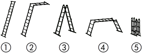 2 Anlegeleiter mit Wandabstandhalter 3 Beidseitig begehbare Stehleiter 4 Arbeitspodest 5 Extrem kompaktes Transportmaß |